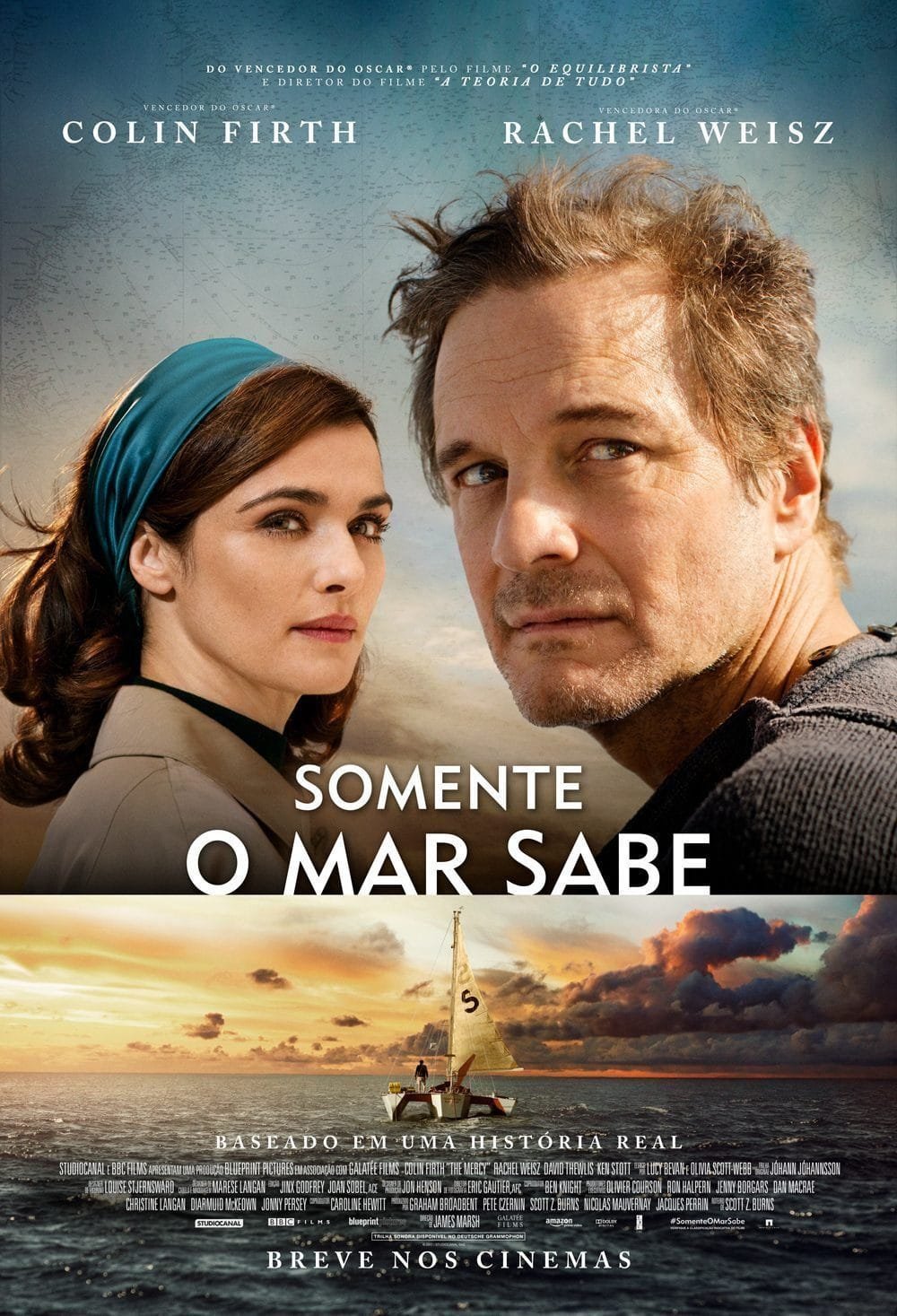 Baseado em uma história real, “Somente o Mar Sabe” (The Mercy), lançamento da Paris Filmes que chega aos cinemas brasileiros no dia 26 de abril tem seu trailer e cartaz recém-divulgados. Dirigido por James Marsh, (vencedor do Oscar pelo filme “O Equilibrista” e diretor do filme “A Teoria de Tudo”), o longa retrata a vida de um homem que decide investir no seu sonho e transformá-lo num acontecimento histórico, quando se inscreve numa importante competição de vela, para ser o mais rápido competidor a dar a volta ao mundo. Interpretado por Colin Firth, Donald Crowhurst envolve sua família no seu audacioso plano e contata investidores para viabilizar a construção de uma embarcação que possibilite sua rápida travessia pelos seis continentes. Em águas revoltas e belas cidades à beira-mar, o trailer revela o apoio e os conflitos de sua esposa Clare (Rachel Weisz), além das decisões que precisam ser tomadas diante das dificuldades ao longo de sua turbulenta viagem. O elenco reúne ainda os atores David Thewlis, Ken Stott e Mark Gatiss.