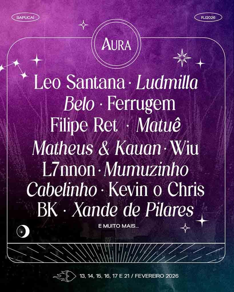 A curadoria musical do Camarote Aura incluirá atrações de destaque nacional. O line-up confirmado já reúne nomes como Ludmilla, Matheus e Kauan, Filipe Ret, Xande de Pilares, Kevin o Chris, BK, Belo, Ferrugem, Cabelinho, Mumuzinho e Léo Santana.