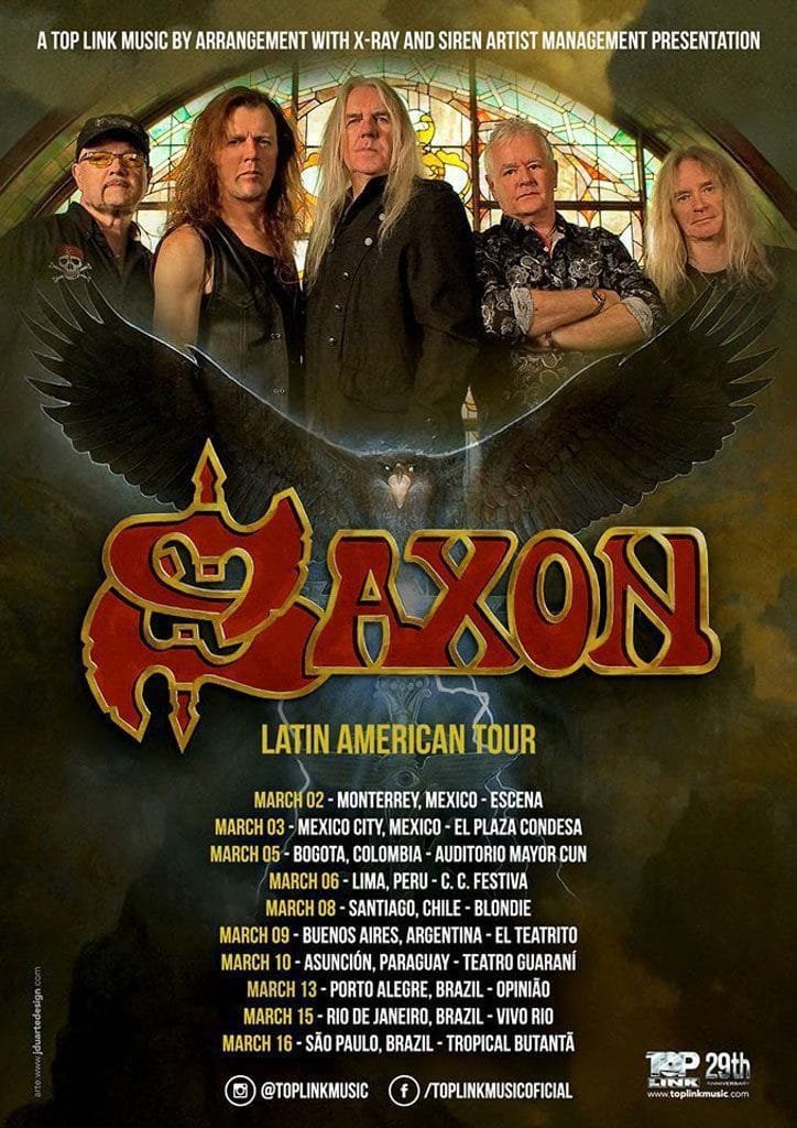 A lendária banda Saxon, um dos nomes mais cultuados do seminal movimento NWOBHM (New Wave of British Heavy Metal), encerra mais uma bem-sucedida longa turnê pela América Latina, neste sábado (16/03), no palco da Tropical Butantã, em São Paulo.