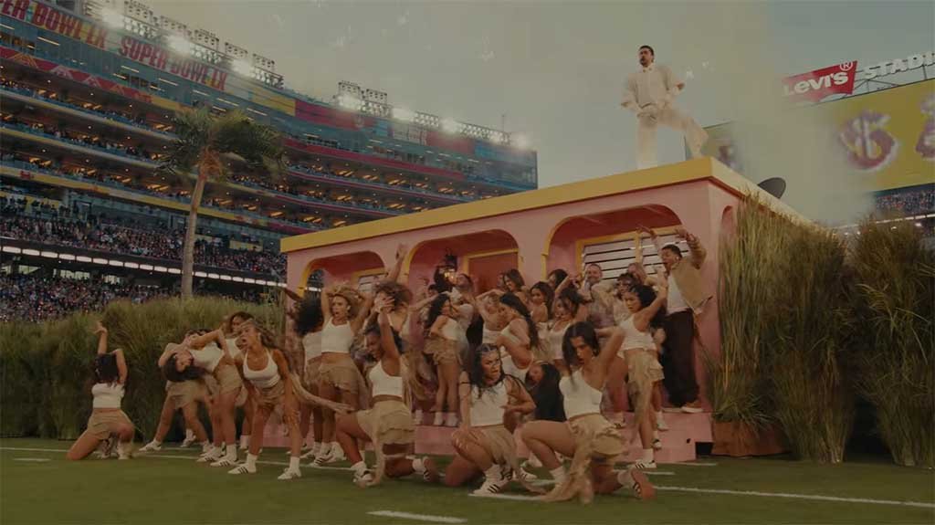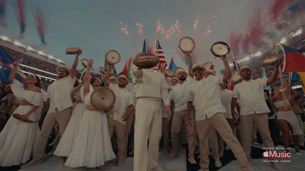 Bad Bunny entrou para a história ao realizar o primeiro show de intervalo do Super Bowl totalmente em espanhol. Até então, o único indício sobre o conceito da apresentação vinha de um trailer da Apple Music com a música “Baile Inolvidable”. No vídeo, ele dançava com um elenco diverso. A proposta indicava união e celebração. No entanto, o artista incluiu mensagens políticas e referências culturais ao longo dos 13 minutos de show.