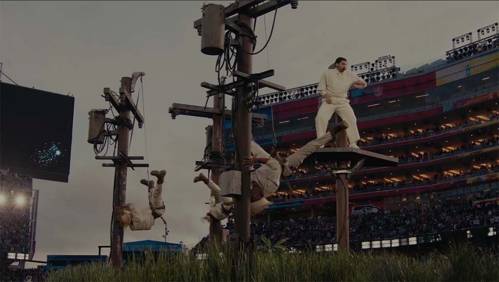 Em “El Apagón”, trabalhadores apareceram em postes de energia. A música fala de apagões frequentes em Porto Rico. Após o furacão María, o território enfrentou longo período sem energia. Moradores subiram em postes para religar linhas. A cena ligou passado colonial e crise recente.