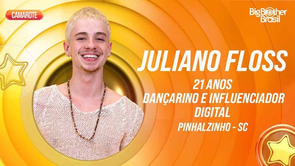 O dançarino e influenciador digital Juliano Floss soma cerca de 20 milhões de seguidores nas redes sociais. Aos 21 anos, é natural de Pinhalzinho, Santa Catarina, e participou do “Dança dos Famosos” no “Domingão com Huck” em 2024.